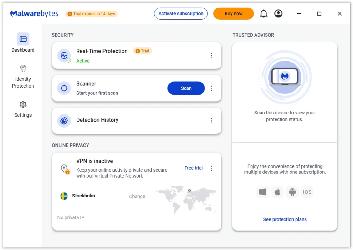 Es hilft, unbefugten Zugriff oder Malware zu verhindern und Datenschutzverletzungen zu verhindern. Wenn Sie Echtzeitschutz wünschen, müssen Sie auf die Premium-Version umsteigen und auch mehrere andere erweiterte Funktionen nutzen.